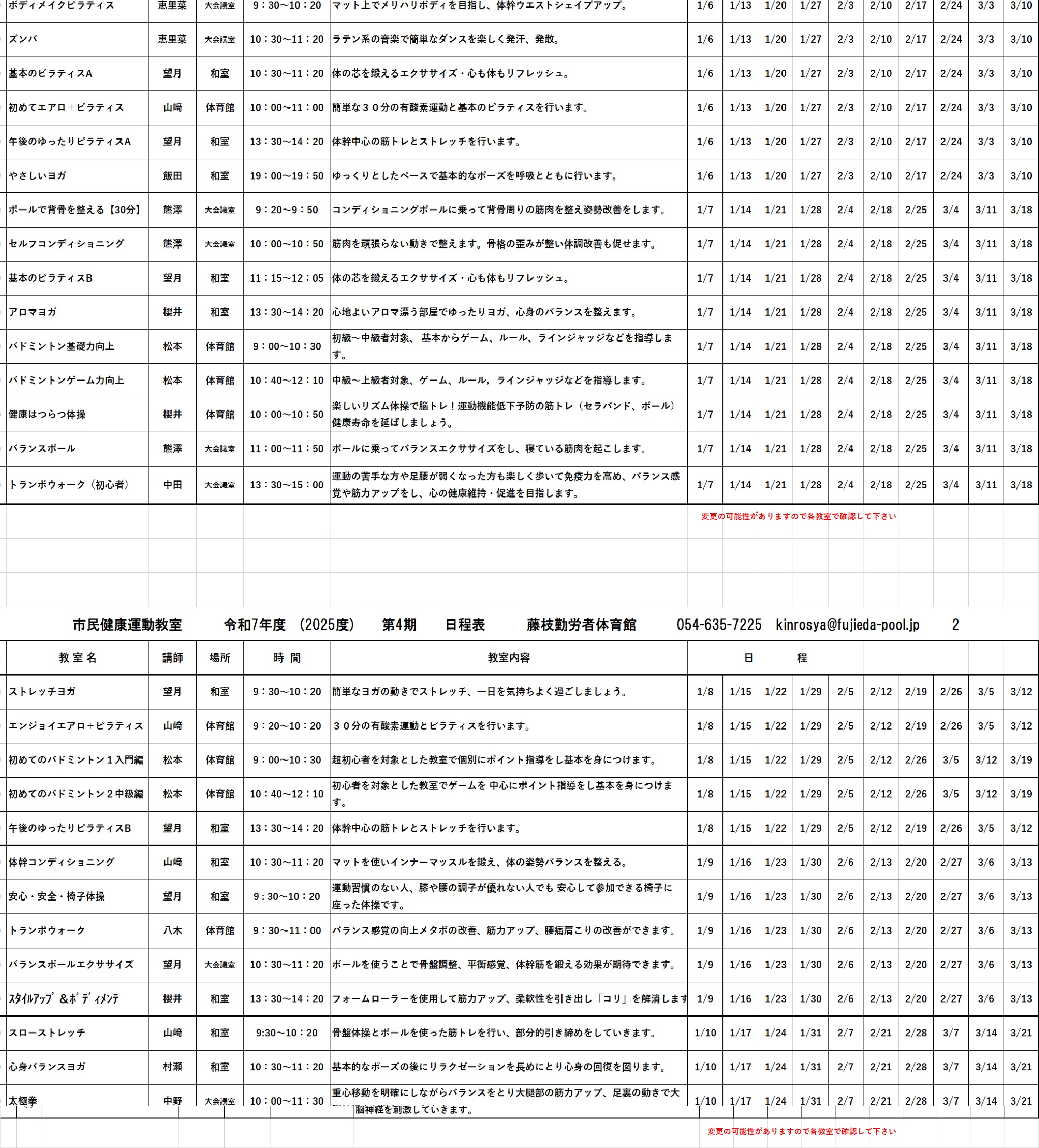 第4期市民健康運動教室申し込み書及び日程表 ← ここをクリックで印刷できます。